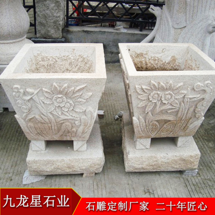 花崗巖石雕花缽顧名思義就是石頭制作而成的花盆,也叫花缽。一般歐式花缽圖片大多是花崗巖制作而成的,石雕花缽的優勢相信很多人都知道的,花崗巖花缽的質地堅硬致密、強度高、抗風化、耐腐蝕、耐磨損、吸水性低,美麗的色澤還能保存百年以上,顏色美觀。花崗巖花缽不僅格調高雅,花色繁多,剛性好,耐磨性強,溫度變形小,保養更是方便簡單,使用壽命長。