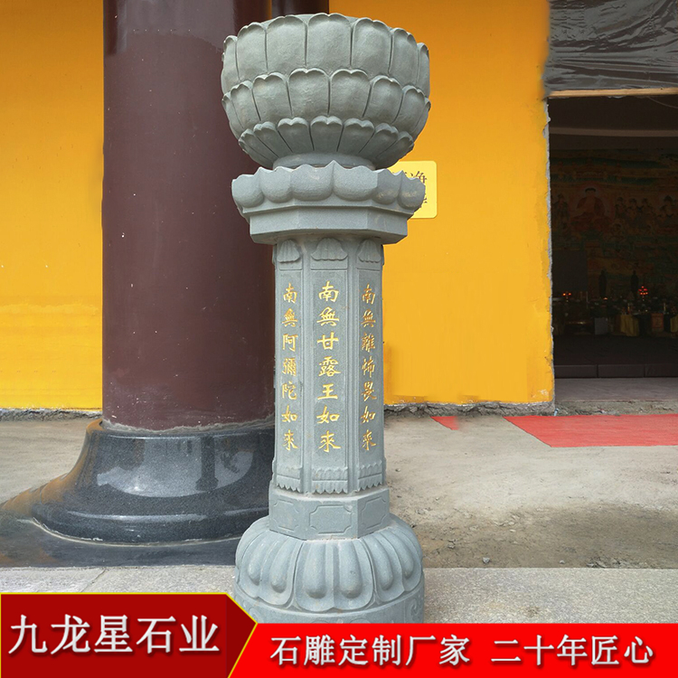 寺院青石出食臺的尺寸款式和做工都是相當不錯,作為佛教殿外常用的法器。這里面有一個故事:母子鬼神常常抓別人的孩子來吃,佛祖變把她的孩子攝到佛缽里,讓她推己及人,而后被感化皈依佛門,成為一個護法天神,可是他的食量大,經常吃不飽,佛祖便令僧人們在吃飯時,均出一些食物放在臺子上,供鬼子母神消食。后來各地寺院紛紛仿效,于是便有了出食臺石雕雕刻。