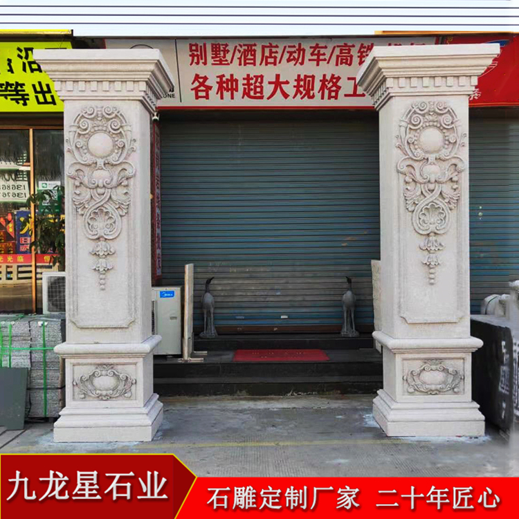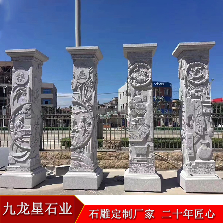 大理石石雕圓柱加工 浮雕文化柱廠家——各種花樣款式很多,歡迎致電九龍星咨詢。
