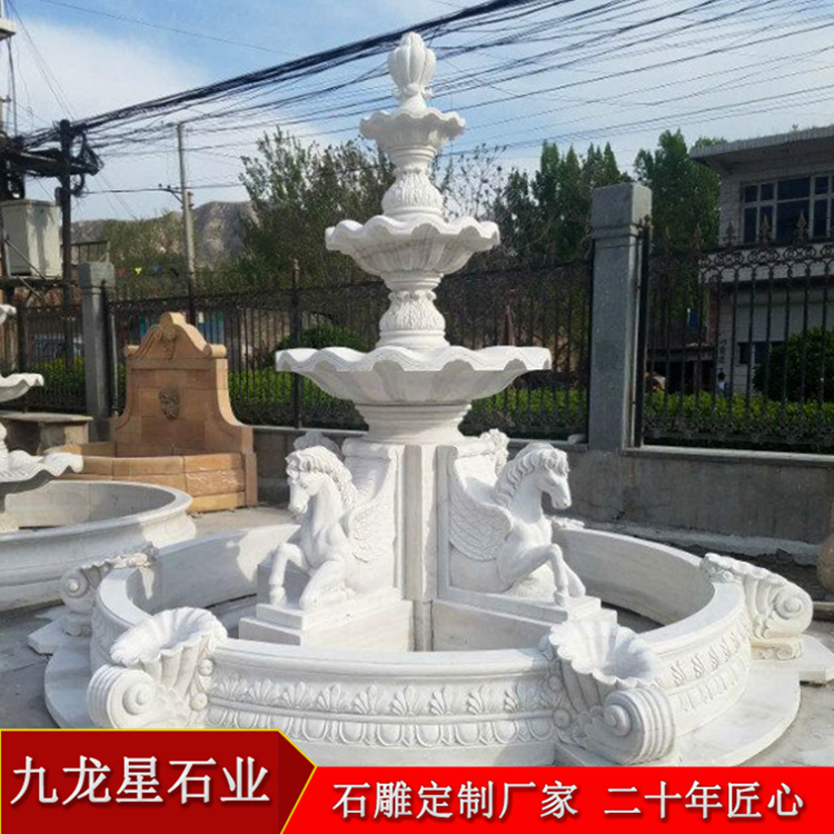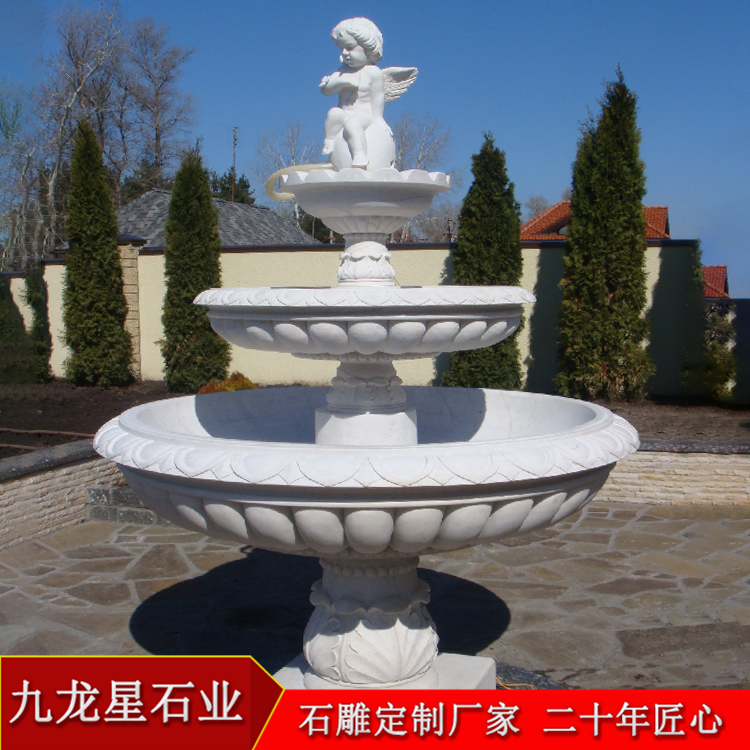 石雕噴泉是用石雕雕塑的外形,搭配上噴泉水,將裝飾的效果提高了不少。石雕噴泉分為:動物石雕噴泉、人物石雕噴泉等等,可以根據具體的需要定制大小不同的石雕噴泉。雕刻與噴泉相結合,能夠更好的起到裝飾的效果,單獨的噴泉難免顯得有些單一,搭配上精致的石雕雕塑就會顯得相得益彰。