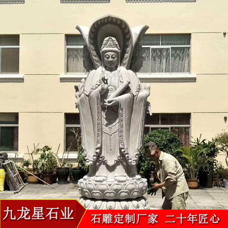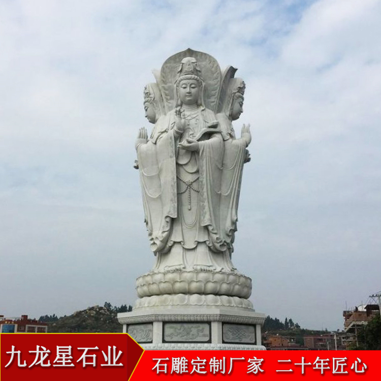 在傳說中石雕觀音佛像的形象是以慈祥、端莊、仁愛,有著千般面相,普度著眾生。在一些寺廟、民間佛堂、風景區都有供奉的石雕觀音雕像,菩薩觀音像的造型在制作上的樣式也是比較多的。