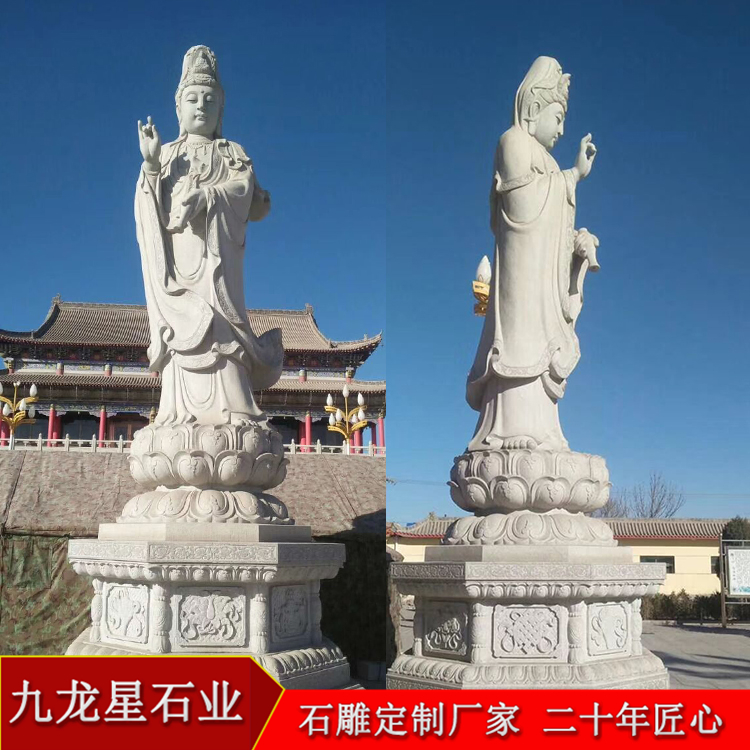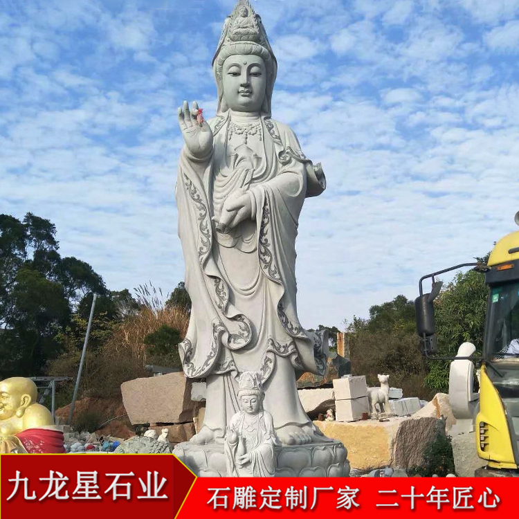 同時要想制作一尊好的石雕觀音像出來,那就就必須控制好源頭。原材料是基石 ,是一尊質量好的觀音像的有效保證。用以制作石雕觀音像的石料外觀顏色足夠均 勻的話,制作出來的觀音菩薩像也會更加的美觀。比較常見的材質是花崗巖、漢白玉 。