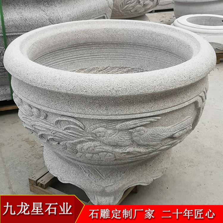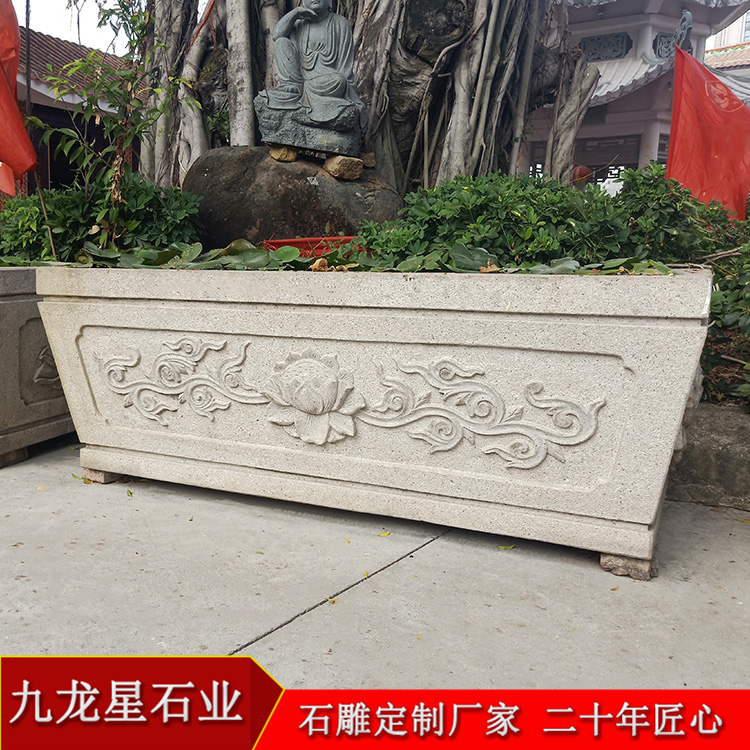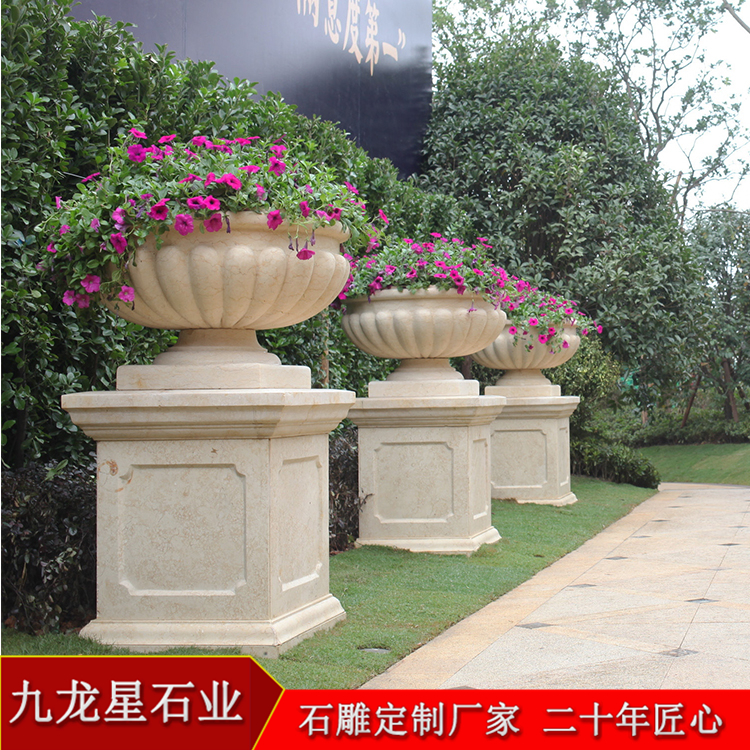 園林石雕花盆圖片以其優(yōu)美的雕刻技術(shù)、大氣的形態(tài)、長久的使用壽命深受大家的喜歡。在街頭,我們可以看到三三兩兩的花缽,一字排開,花缽內(nèi),各色的時令花卉栽種其間,通過定期地澆水、施肥、養(yǎng)護(hù)后,便收到了不錯的景觀效果。