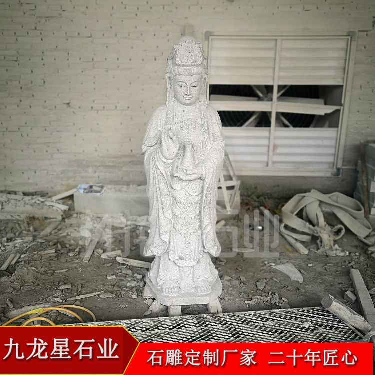 石雕觀音大型雕像 寺廟菩薩佛像定制 金童玉女雕塑
