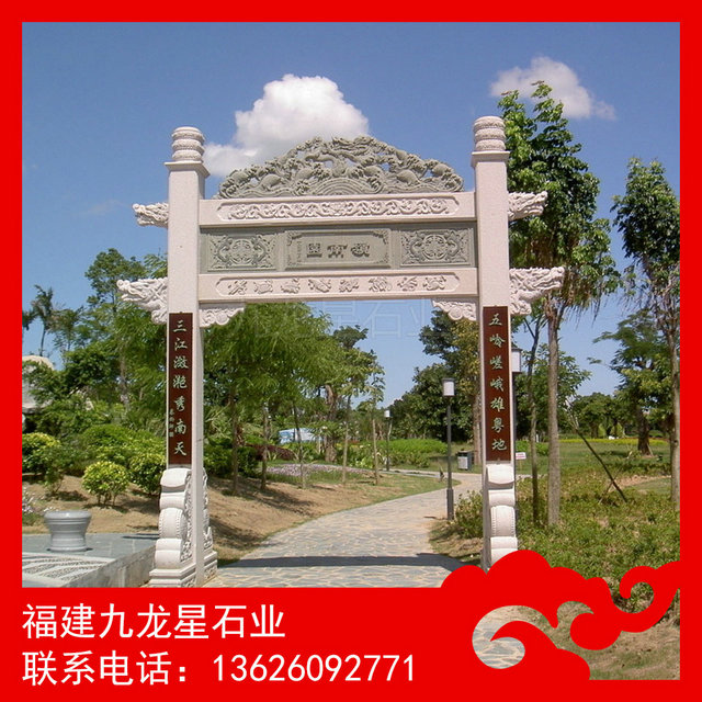 單門石牌坊是相對常見的雙門、三門、五門等石雕牌坊來劃分的。其單門在石雕牌坊中顯得是如此的“嬌小”,也正因為其“嬌小”身軀,所以單門石牌坊所適用的位置一般都是風(fēng)景區(qū)的非主區(qū)位置,通常位于由一個景點進入下一個景點的交接處,起著承前啟后的作用。單門石牌坊的出現(xiàn),使得石雕牌坊更加的貼近普通群眾,同樣的也使得其所在更有歷史和文化的韻味。