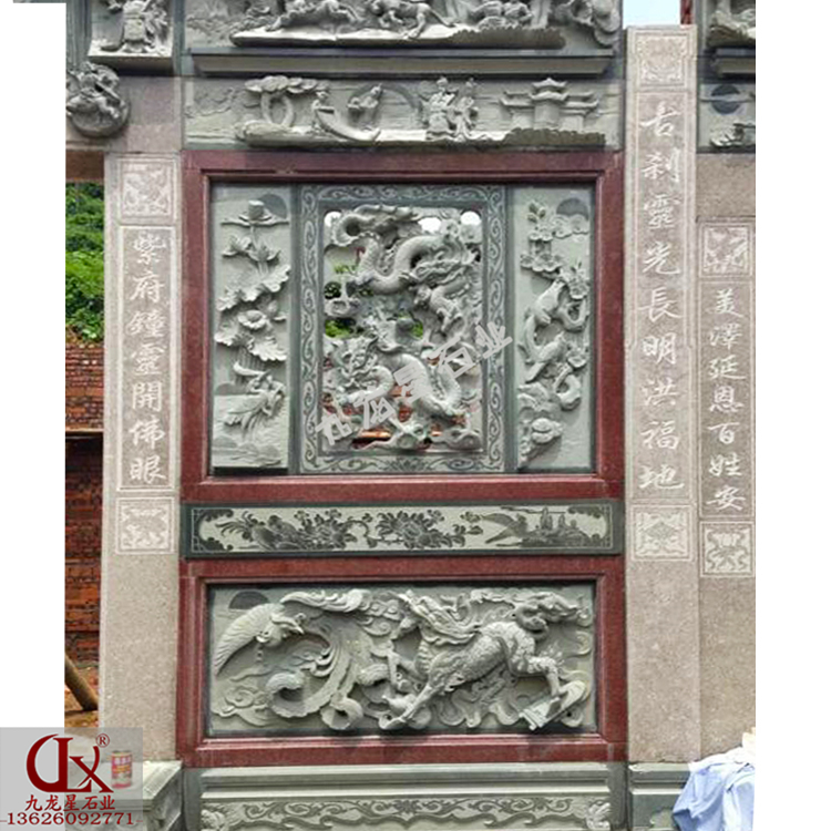 寺廟正殿門墻浮雕壁畫 石頭浮雕制作價格——九龍星石業。