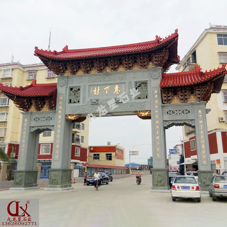 哪里有村口牌坊加工 村口牌坊設計圖片——九龍星石業,二十年石雕牌坊廠家。