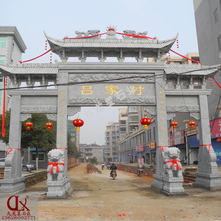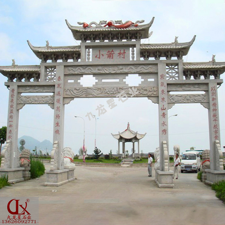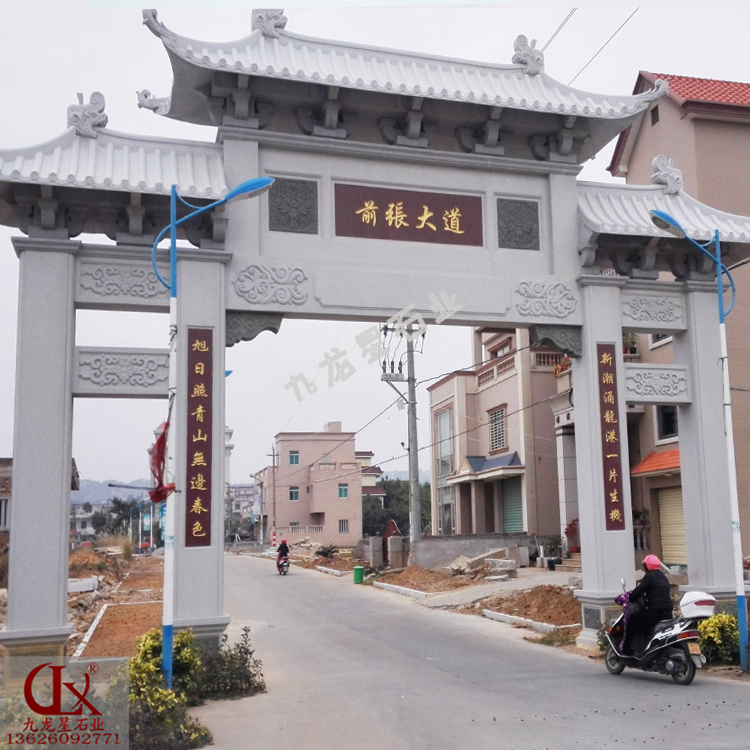 門樓牌坊多少錢一個 鄉(xiāng)村簡易門樓牌坊價格——九龍星石業(yè),二十年雕刻工藝。