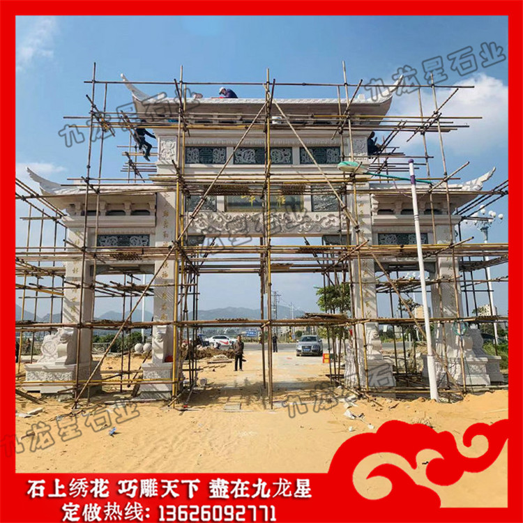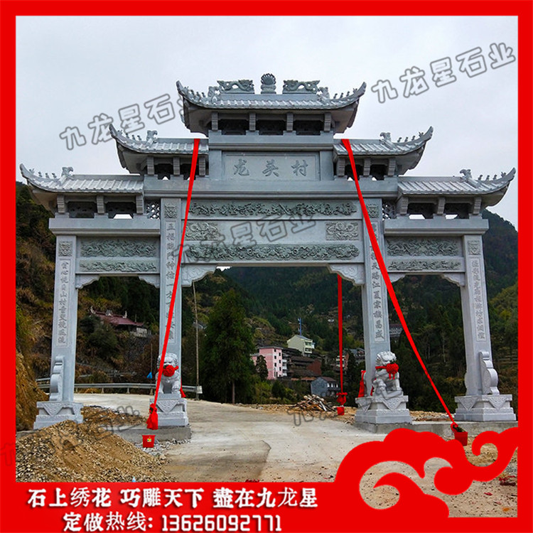 石牌坊(新農(nóng)村石雕門樓 村口石頭牌坊價(jià)格)——九龍星石業(yè)。