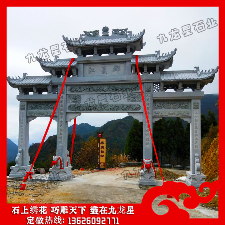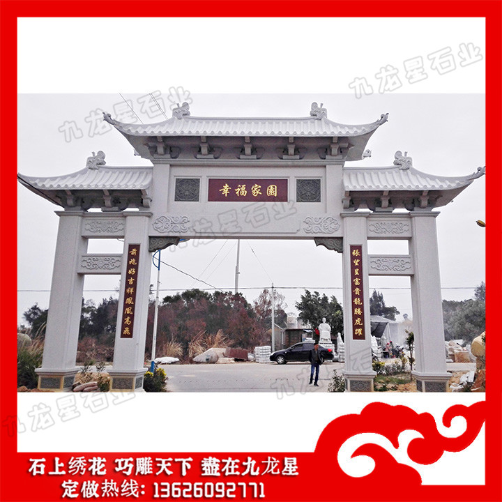 石雕牌坊(村口石牌樓 村口大門樓需要多少錢)——九龍星石業(yè),二十年雕刻工藝,品質(zhì)保證。