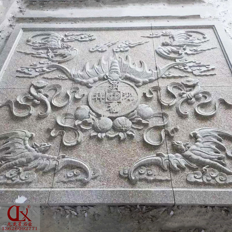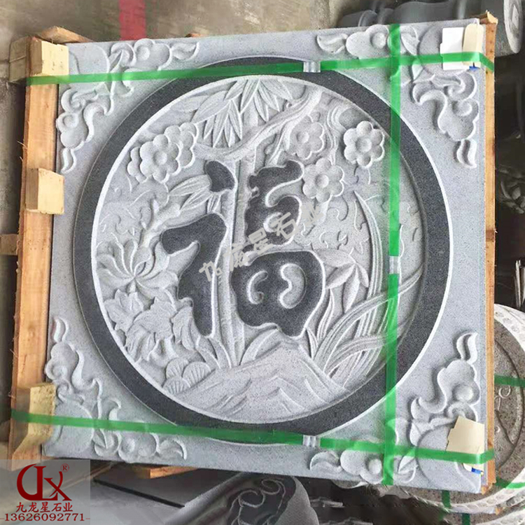 青石浮雕五福臨門 中式石刻浮雕設計——九龍星石業。
