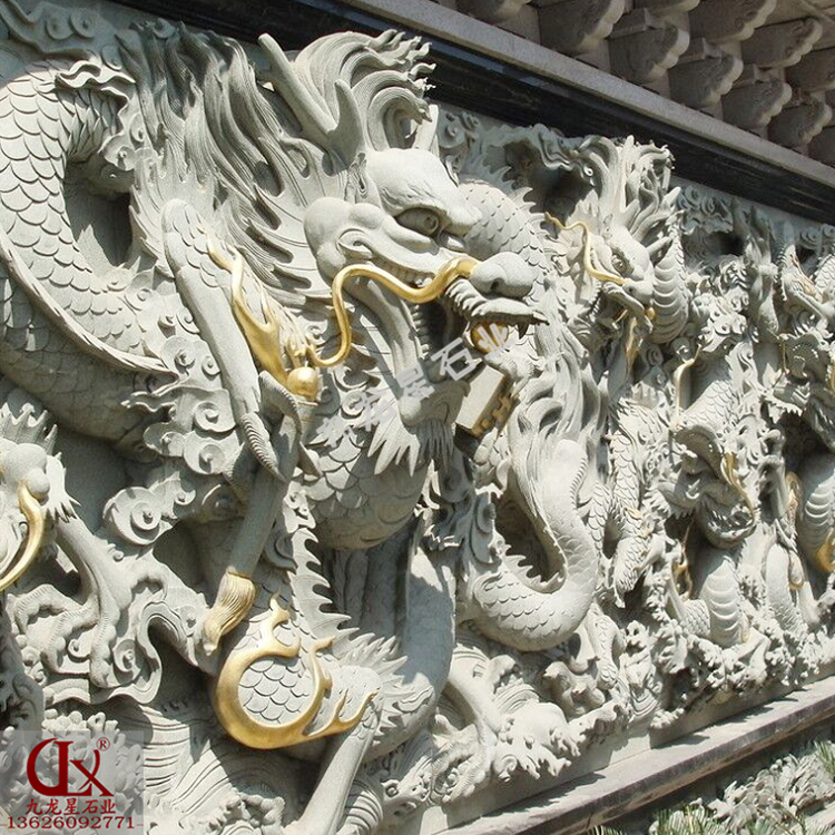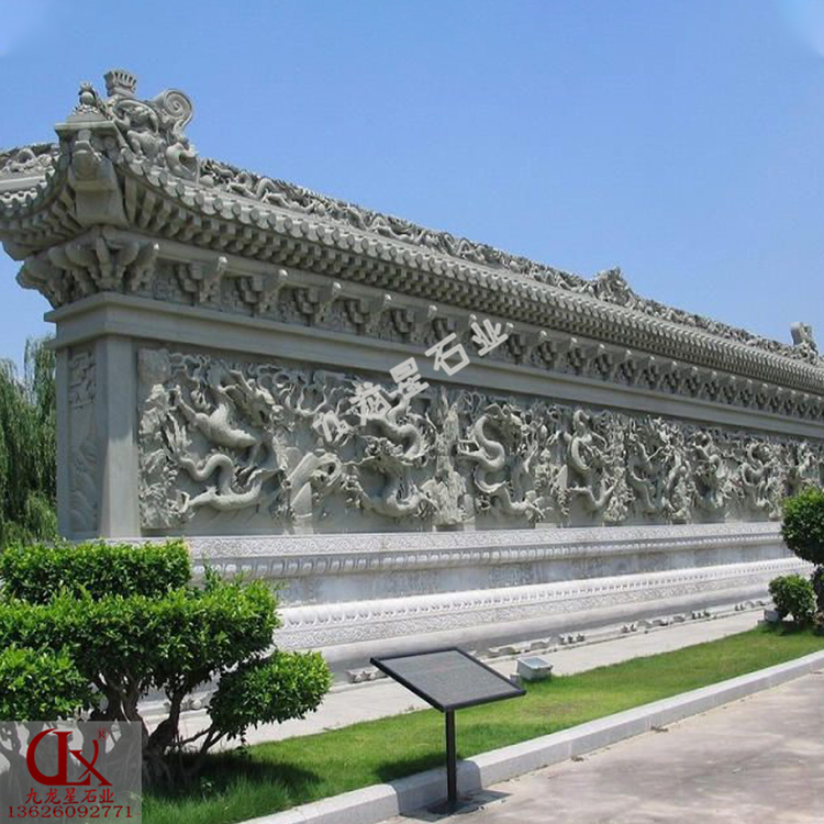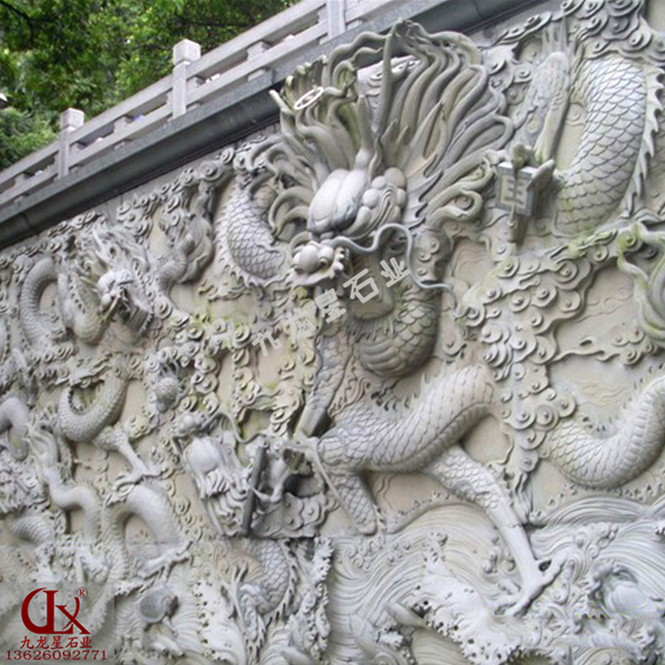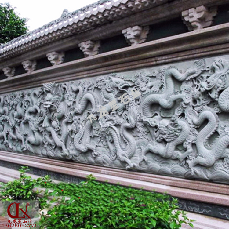 九龍照壁墻雕刻造型本身就有很好的吉祥寓意,再和現(xiàn)代設(shè)立理念相結(jié)合,能夠成為不錯的設(shè)計體裁。龍的圖畫充滿著吉祥如意,所以許多裝飾物都樂意挑選龍的造型。無論龍的數(shù)量有多少,他們能夠從這里借鑒一些內(nèi)容,并且和現(xiàn)代建筑裝飾理念相結(jié)合,會有新的思想上的火花,對于現(xiàn)代建筑來說有很大的含義。