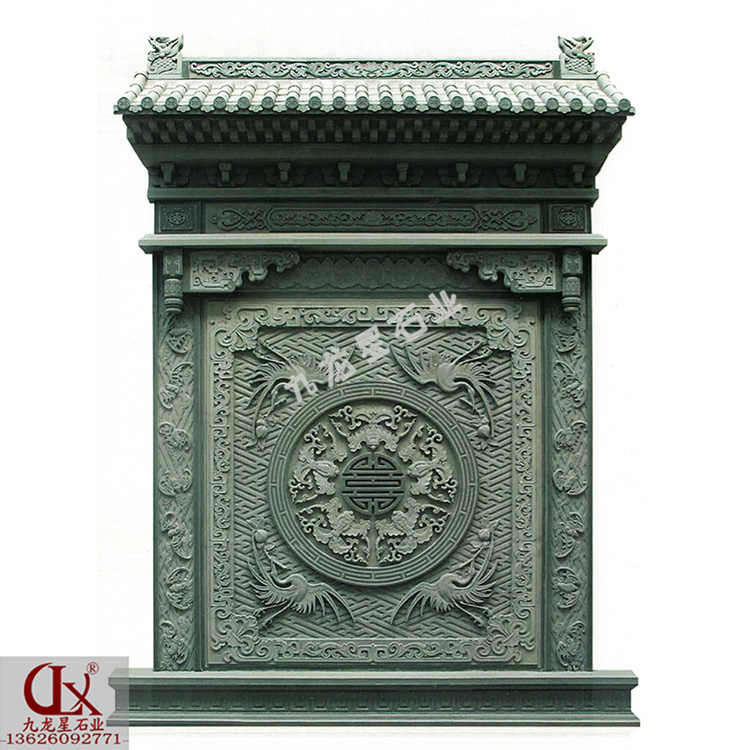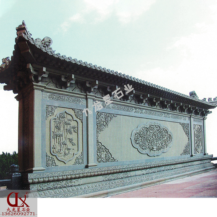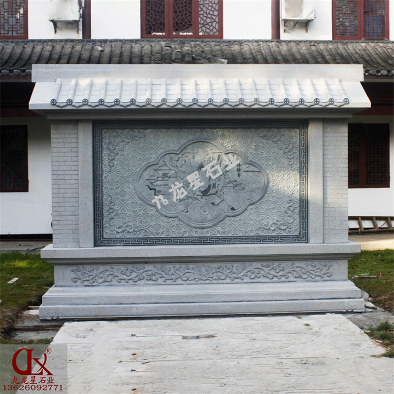 別墅小院照壁墻效果圖 石雕照壁浮雕圖片——九龍星石業。