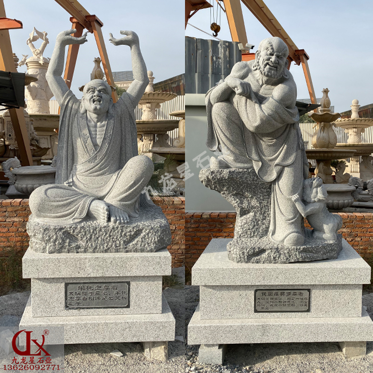 人們常用的十八羅漢雕像一般用在家居別墅,寺廟佛堂,公園景區等區域。人們對于羅漢的喜愛是來源于羅漢是人們所修行的小乘佛法的最高果位,對于修行人的要求相對比較低,并且在品行方面會有比較寬松的一種界定,所以也是對比與佛和菩薩這樣高果位的神明來說,石雕雕刻18羅漢像無疑是人們修行階段的前期方針。基于這些原因,羅漢在民間也是廣受人們的供奉。
