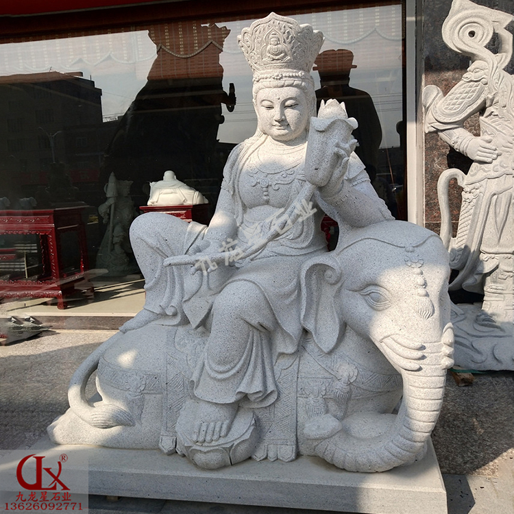 文殊普賢菩薩圣像雕刻一般都是采用天然優(yōu)質(zhì)花崗巖雕刻,石材紋理美觀,雕刻線條流暢,純手工雕刻精美絕倫。普賢菩薩石像造型手持七寶蓮,神態(tài)端莊的坐于六牙白象背上,石雕普賢菩薩與觀世音菩薩,地藏王菩薩、石雕文殊菩薩合稱佛教四大菩薩,象征理德、行德。與釋迦牟尼佛如來、文殊菩薩又尊稱為“華嚴三圣”。