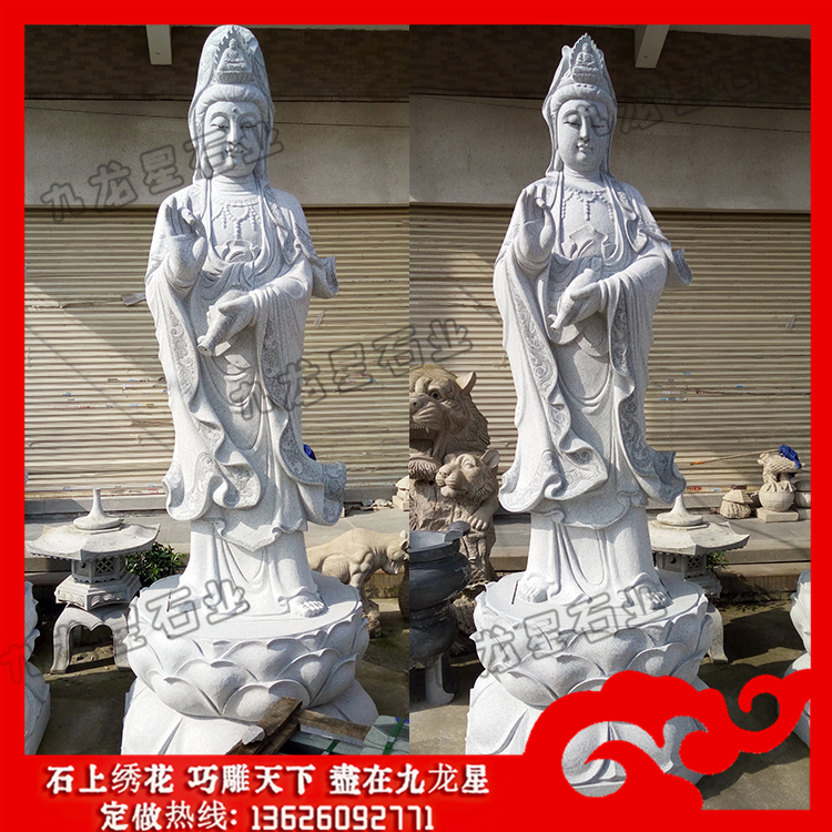 石雕觀音雕像雕刻 觀音石雕大型佛像擺件