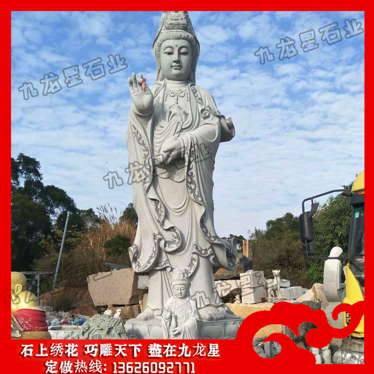 石雕觀音像定做普遍用以園林古建、寺院工程項(xiàng)目、旅游點(diǎn)風(fēng)景名勝裝飾設(shè)計(jì)擺放。觀音塑像圖片大全大多是由天然大理石、花崗巖白麻石生產(chǎn)加工而成的。寺廟石雕觀音像定做從現(xiàn)在一般的雕刻看,以花崗巖居多,花崗巖的耐用性好,耐久性也都非常不錯(cuò),石雕觀音菩薩像的雕刻設(shè)計(jì)也都更具精致美感。當(dāng)然如果想要高檔性的話可以選擇漢白玉,漢白玉用料的價(jià)格相對(duì)會(huì)高一些,在預(yù)算的時(shí)候需要有一定了解。