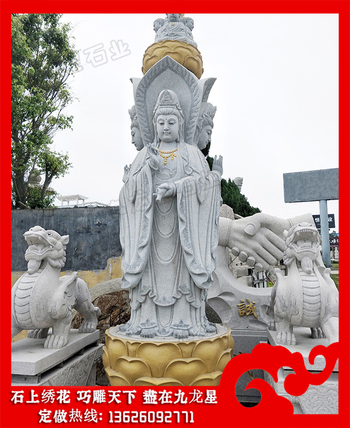 觀音石雕像(石雕四面觀音圖片大全 四面觀音石像定制)——九龍星石業,惠安知名石雕佛像廠家。