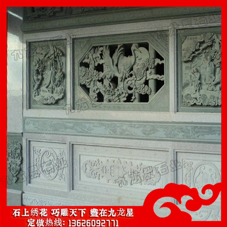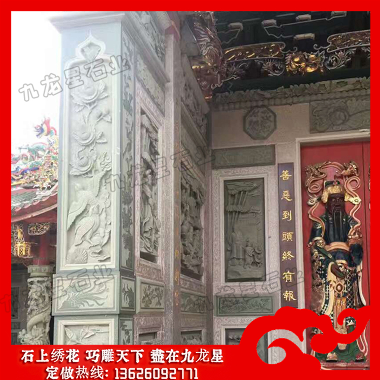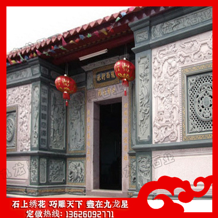 在寺院宗祠中,石雕建筑各種各樣,青石浮雕雕刻墻面的應(yīng)用也是非常多,再者就是農(nóng)村祠堂了,農(nóng)村祠堂面積較小,但其形成也跟寺院相差無幾,因此在一些青石浮雕壁畫的應(yīng)用上也是大同小異。