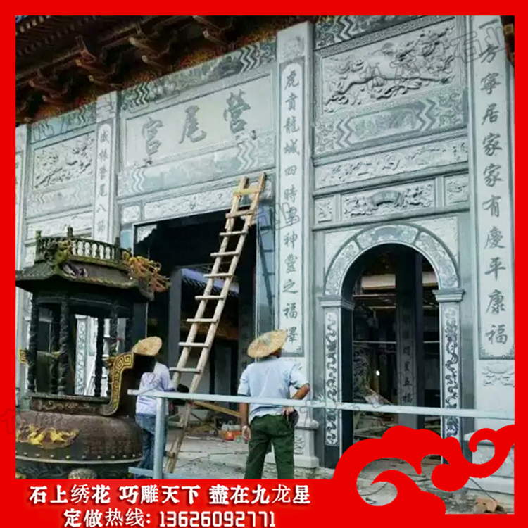 寺院門頭石雕壁畫是一種十分有表現力的繪畫藝術,它通過了石雕的形式來進行圖案、線條的表現,與傳統的畫筆不同,但是也具備著自己的特殊效果,特別是因為通過堅硬的石材進行打造,所以這樣的壁畫可以在室外長期使用,安放,這一點無疑十分地受到人們的認可。