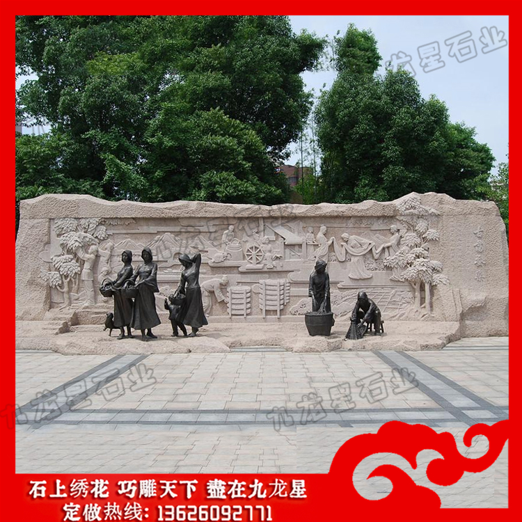 石材浮雕文化墻效果圖是浮雕藝術工藝中的系列之一。石材浮雕山水畫在城市美化環境中占了越來越重要的地位,不僅增加了城市文化氣息,同時又豐富了人們的視覺享受。浮雕一般是附屬在另一平面上的,因此在建筑上使用更多,用具器物上也經常可以看到。由于其壓縮的特性,所占空間較小,所以適用于多種環境的裝飾。在園林廣場,酒店的墻面上,,它們都會采用石材浮雕山水畫在墻面上進行雕花,雕刻各種精美的圖案,像植物動物圖案應有盡有。還有小到現在的家庭裝修,很多都會在電視墻面上做一些浮雕圖案,給整個家增添了美觀效果,看起來更大氣。