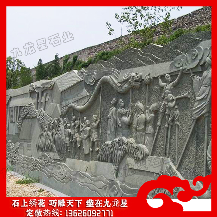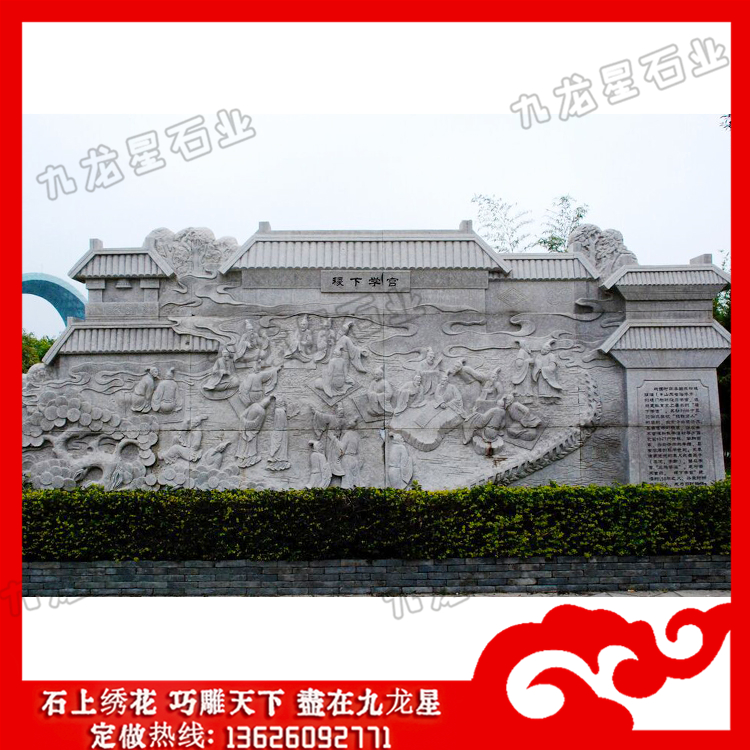 石雕浮雕(石材浮雕山水畫 石材浮雕文化墻效果圖)——九龍星石業。