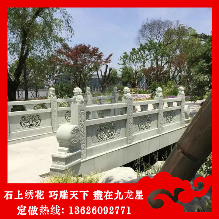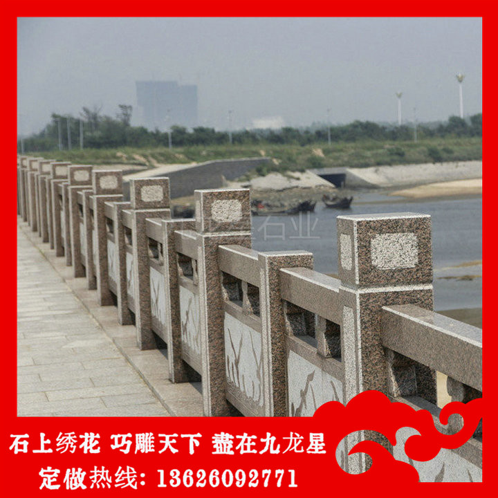 河道石欄桿加工因其獨特的材料特殊性,易于維護、抗風化、防水防雨、耐臟、厚重不易脫落等特點被工程大量使用。對于石材欄桿圖片及價格的款式有很多,對于石欄桿的設計方面,我們要根據切合實際情況的用途,建造跟家安全,穩固,多變等方面來考慮并加以設計,我們可以根據實際建筑風格,所使用的場地以及個人的喜好程度來設計出獨特的河道石欄桿風格。