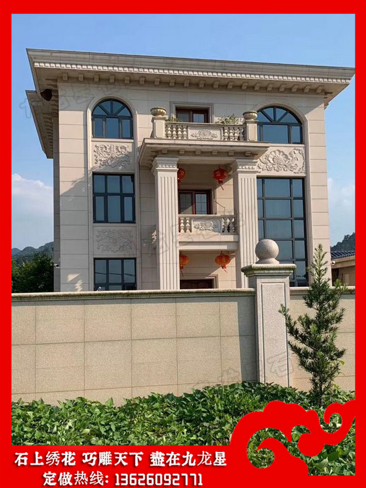 現如今很多的歐式別墅實會用白色面磚和真石漆裝飾而成,前方羅馬柱和中式別墅外墻浮雕畫非常符合歐式別墅的氣質,大面積落地窗和多開窗的設計,不僅讓別墅更加美觀,更是美好的為室內通光通風做考慮。別墅花崗巖浮雕圖片大面積運用浮雕壁畫了,因為浮雕壁畫能提升小區的文化檔次和品味,一般高檔小區浮雕壁畫設計后,都會選擇字體材質或者漢白玉材質、大理石材質,中式別墅外墻浮雕畫雕刻的大量運用。
