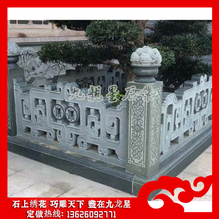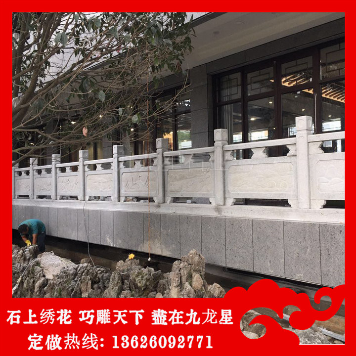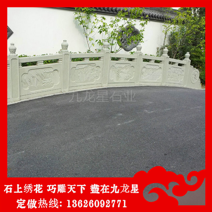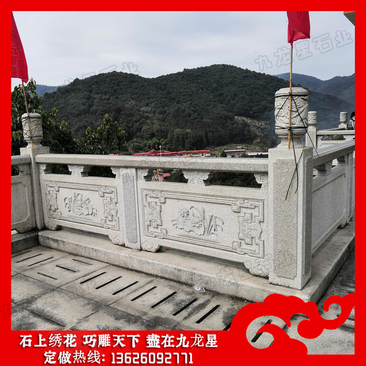 園林石欄桿樣式之所以成為中國建筑主要構件之一,原因就是臺基和欄桿有著不可分割的關系,“欄”必然隨著“臺”而至,臺基高了,便要做欄桿,臺基形狀和構圖主要通過欄桿而表現。建造欄桿的意義在于可以攔住人,以防止人們在邊緣處墜下。它既是一種安全設施,也是一種圍擋設施。找優質花崗巖石欄桿廠家,就來九龍星。