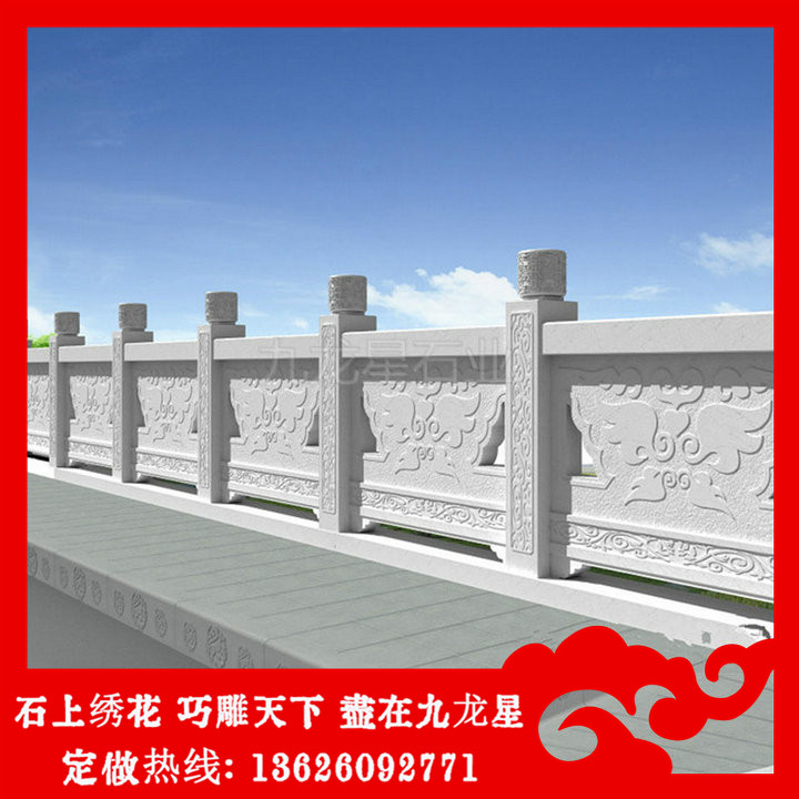 橋欄桿石材的制作材料有很多中,例如有青石、花崗巖、漢白玉、綠砂巖、芝麻白、芝麻灰等多種石材,橋梁欄桿通常作為建筑的輔助設計所在,在選擇石材的時候既要結合建筑風格,又要考慮到橋欄桿石材的安全性和牢固性。一般在設計制作的時候需要用料搭配,石材的選擇很多,所提供的設計也有很大的不同。橋梁欄桿多少錢一米和石材選擇是有著很大的關系,就拿青石來說吧,現在的青石價格上漲的比較厲害,那么青石制作的橋梁欄桿價格就還高一些的。