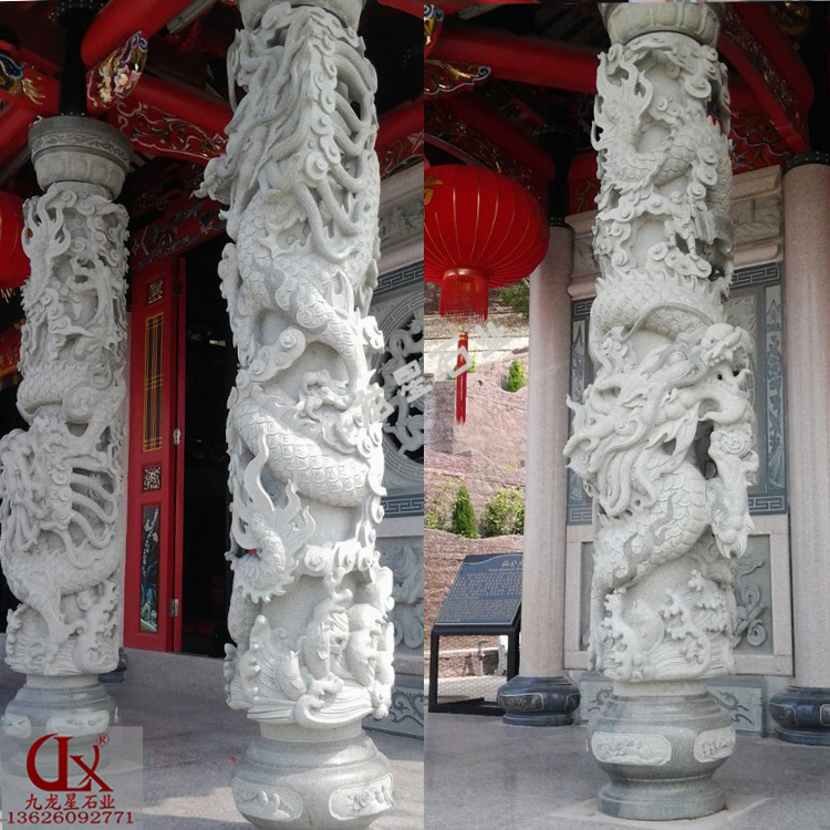 石雕雙龍柱是依據(jù)我國成語“雙龍戲珠”而來,最初覺得兩條龍一同玩,是一個(gè)很好的象征,是友誼和合作的象征。但后來人們認(rèn)為球是一個(gè)國家,而雙龍戲珠具有兩國爭(zhēng)霸國際的意義,表現(xiàn)出一種奮斗精力。所以現(xiàn)在的雙龍柱大多建在學(xué)校、廣場(chǎng)和公園里,很少建在陵墓、家庭和寺廟里。
