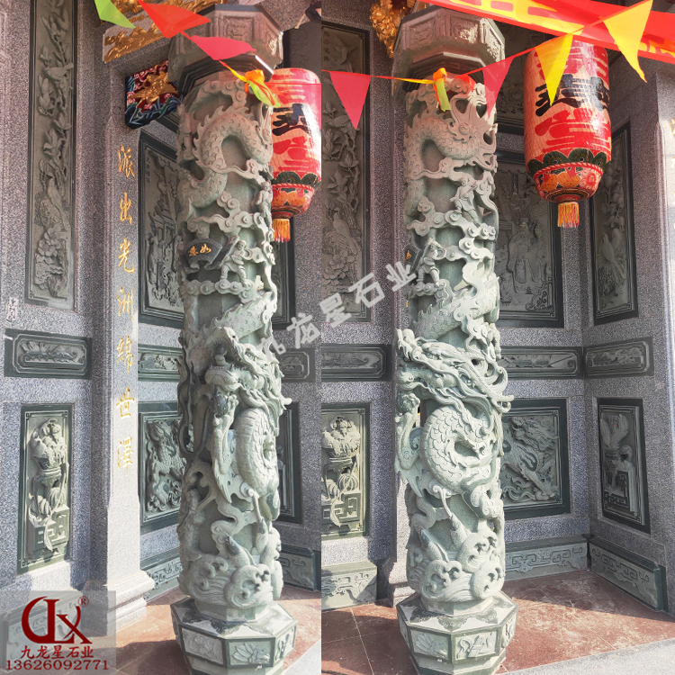 城市廣場石雕文化柱 花崗巖浮雕龍柱雕琢——九龍星石業(yè)。