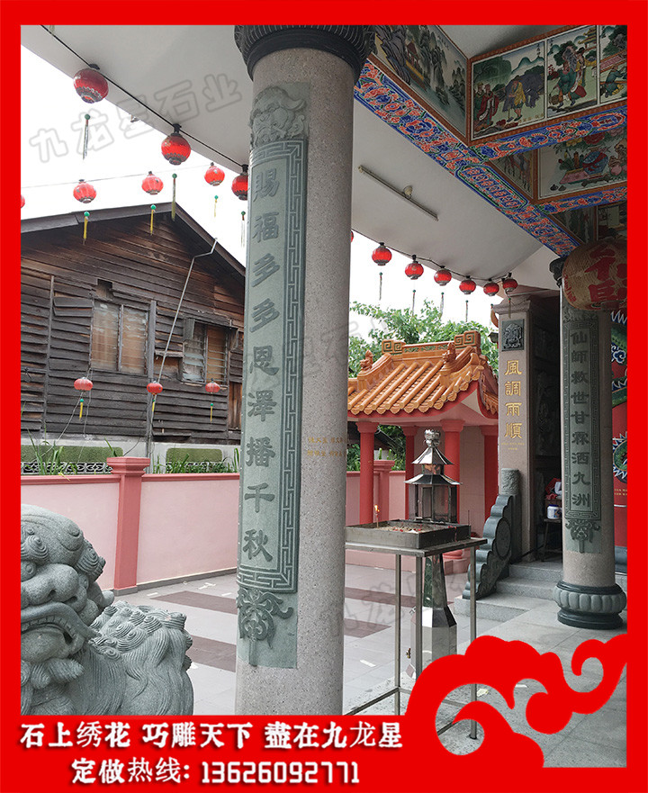寺廟里的石雕圓柱是我國自古便傳承下來的一種觀賞性很強的藝術品,而且有著它獨特的作用。石材圓柱雕刻以奢華、誠信、吉祥等寓意為代表,獲得了許多單位和個人的需求,并廣泛應用于單位公司、辦公室裝修、園林裝飾以及家祠祠堂大殿的頂梁柱等等多個方面及作用。從寺廟里的石雕圓柱加工圖看,如今石柱子的造型以及雕刻樣式也都很多,在實際考慮石材圓柱雕刻價格選擇的時候就要注意好看石雕圓柱的造型和款式風格等。