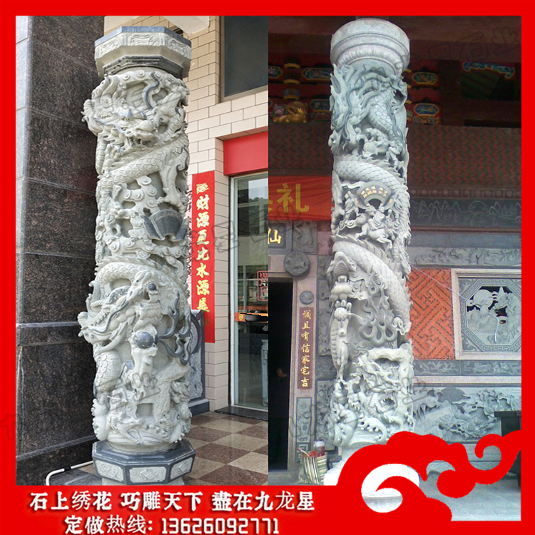 常見的石材盤龍柱 石雕九龍柱圖片大全