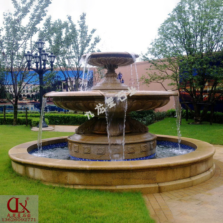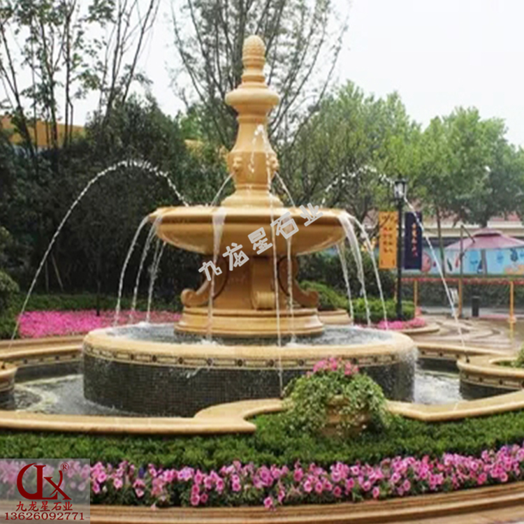 黃銹石石材水缽是一種新形式的噴泉水池雕塑,通過內置的噴泉系統,將水柱噴射在專業批發定制加工芝麻白水缽上,使其不斷的滾動。作業中的景觀雕塑水缽不只可以為人們供給很好的觀賞作用,還有很高的寓意,擺放在家庭別墅,可以給主人帶來好運,擺放在廣場,可以使當地風調雨順人們都好運連連。