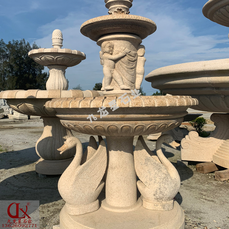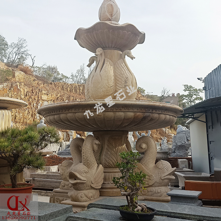 景觀雕塑水缽是雕塑中比較常見的,在公園里,小區里,處處都可以看到石雕噴泉的身影,黃銹石石材水缽分為:動物石雕噴泉,人物石雕噴泉等等,可以根據詳細的需求定制大小不同的石材水缽。雕刻與水缽相結合,可以更好的起到裝修的作用,獨自的噴泉不免顯得有些單一,搭配上精致的石雕雕塑就會顯得相得益彰。