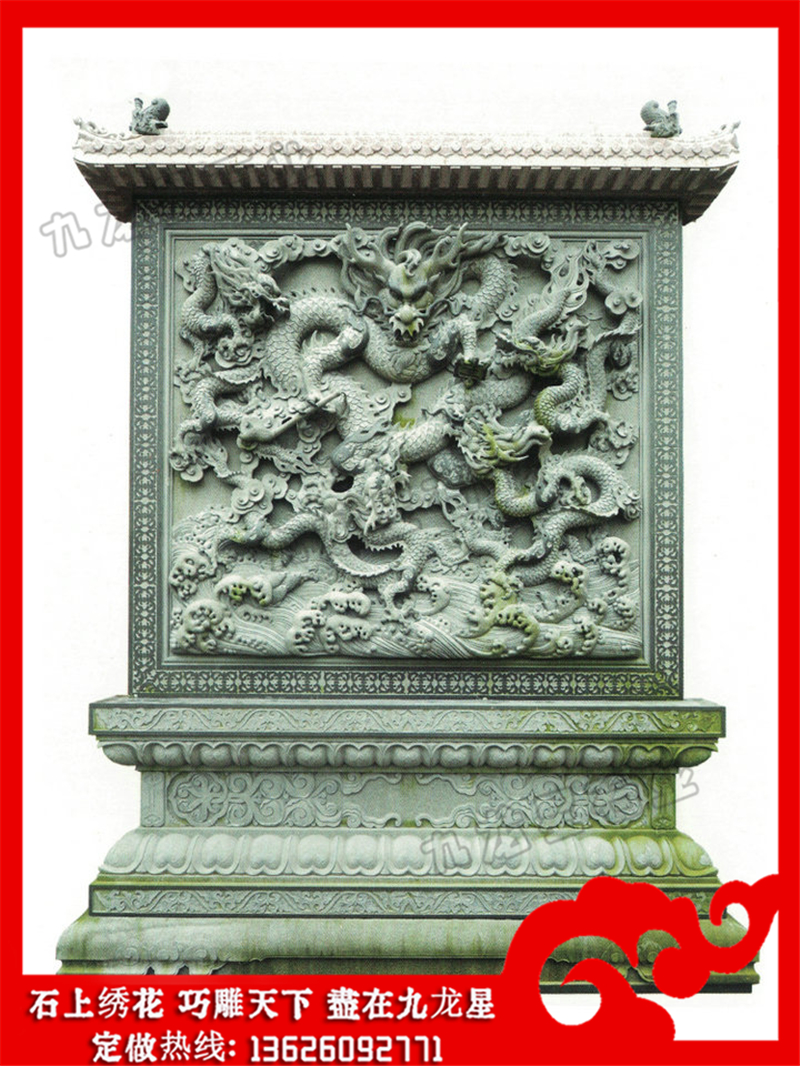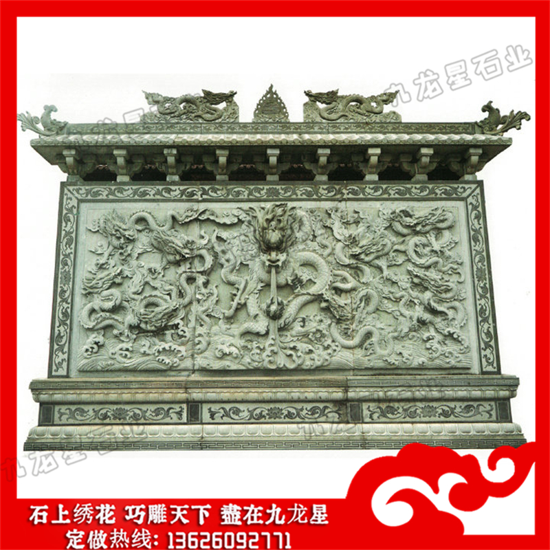 石雕九龍壁浮雕圖片 石雕影壁墻圖片大全