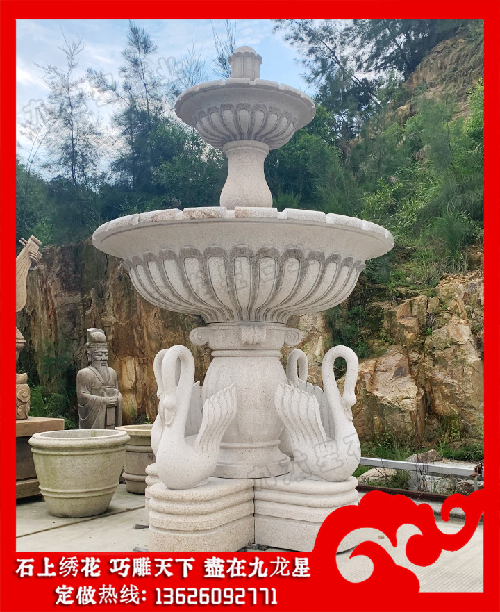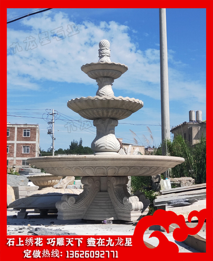 石材水缽噴泉的擺放場所有很多,在不同的場合設計的造型尺寸都會有點不一樣。具體的擺放需求有:1.地方擺放很大很空曠,一般小型的家具是不建議擺放噴泉的,因為體現不出它的大氣美感來,所以好是別墅,還有比較大型的庭院,這樣進門就可以看到這樣的美景,會給人美好的感受,讓人保持心情愉悅。2.擺放的地方好有花有草,如果沒有可以搭配花缽和花壇來實現。埃及米黃噴泉實際上是水和山石的結合搭配,而缺乏了有生命的植物,總是會感覺缺乏了生氣,所以周邊需要種植一些植物,讓石材水缽噴泉周邊充滿綠色和生機。廣場噴泉雕塑設計的款式很多,九龍星石業可根據客戶的需求量身定做。