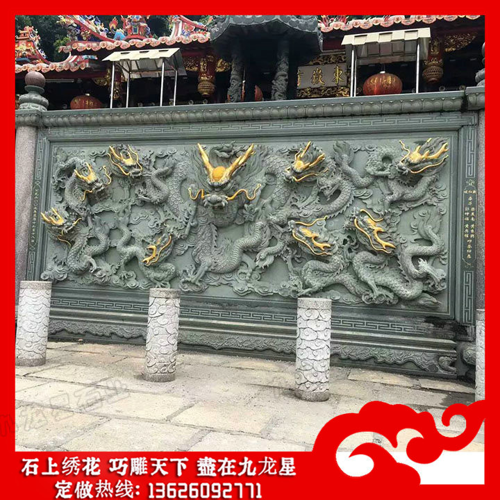 石雕九龍壁畫 石雕影壁墻浮雕圖案