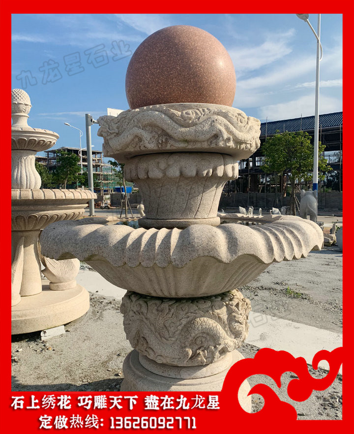 石雕風水球風水球球體加工工藝過程包括:荒料選型、坯料加工、球體回轉支撐孔或凸臺加工、球體輪廓成型、磨拋加工、修補支撐孔等。每一種加工過程的難易程度都將直接影響石雕風水球價格的高低。更多相關的報價疑問歡迎直接致電九龍星石業咨詢。
