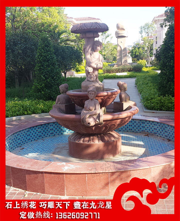 歐美石雕噴泉的樣式已經(jīng)走進(jìn)了各大城市的樓盤,私人別墅、酒店、賓館、裝飾后的小區(qū)景觀更加漂亮,環(huán)境更加宜人,大大促進(jìn)了美觀!各式景觀噴水雕塑與噴水池的景色相得益彰,使環(huán)境變得更加引人入勝。各式動(dòng)物、人物石雕噴泉與噴泉主題相映襯,集合了雕塑藝術(shù)、環(huán)境美化等人文知識(shí),是環(huán)境建筑中一道迷人的風(fēng)景。