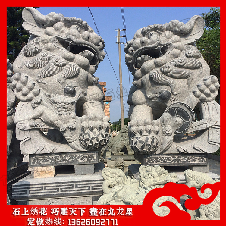 石雕獻錢獅圖片大全——九龍星石業,廠家直銷定做,現貨多多。