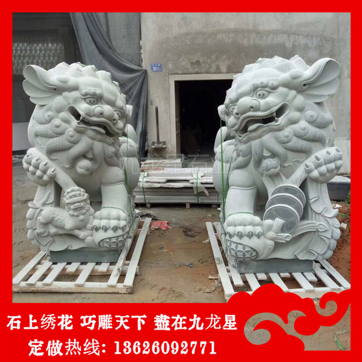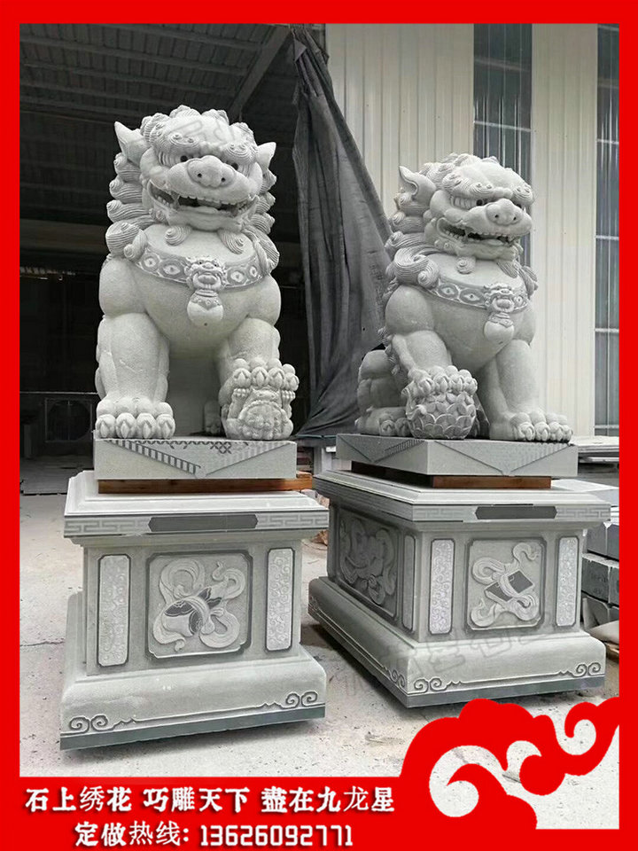 石雕獅子(祠堂前石獅子 石頭獅子價格和尺寸)——九龍星石業