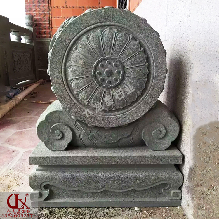 仿古抱鼓石是民居宅門構件的功用產品,它是依托功用施以裝修的石制構件,起著圍護大門壯主人威勢以撐門面的作用。中國的外墻宅門一般為兩扇,而內室門戶為一扇,因為漢字門是由兩戶所組成的,兩扇門決議了抱鼓石必定是對稱的結構。