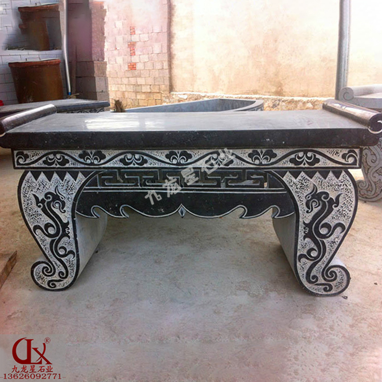 在寺廟宗教文化里,石頭供桌圖片大全的大小,材質,以及擺放的位置都是有講究的,及雕琢所選用的石材。其間,花崗巖和青石質地堅硬,是石頭供桌常用的兩種雕琢石材。