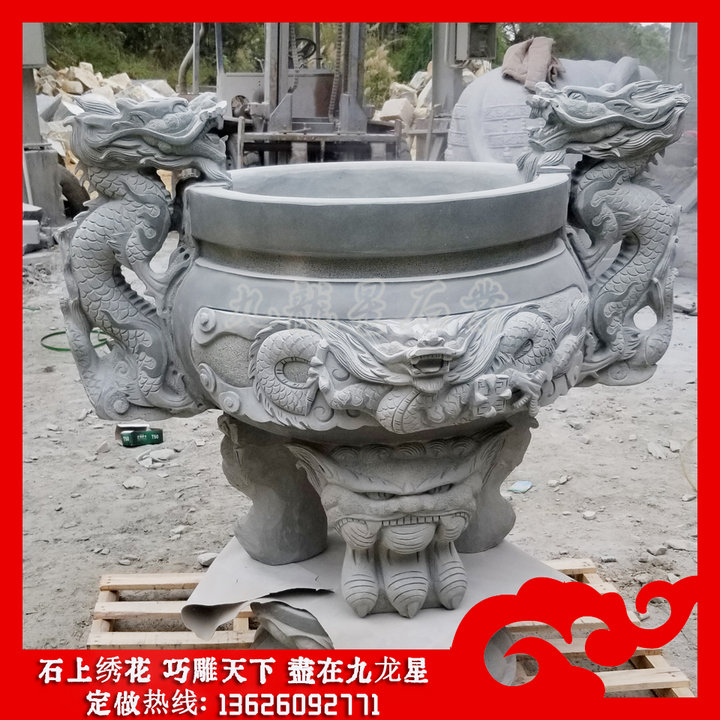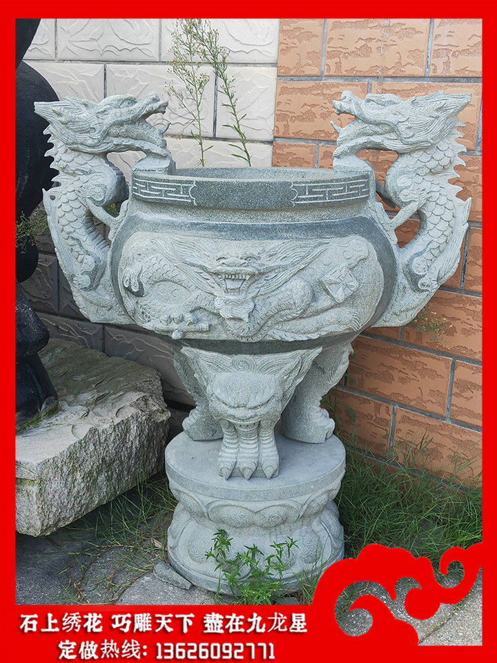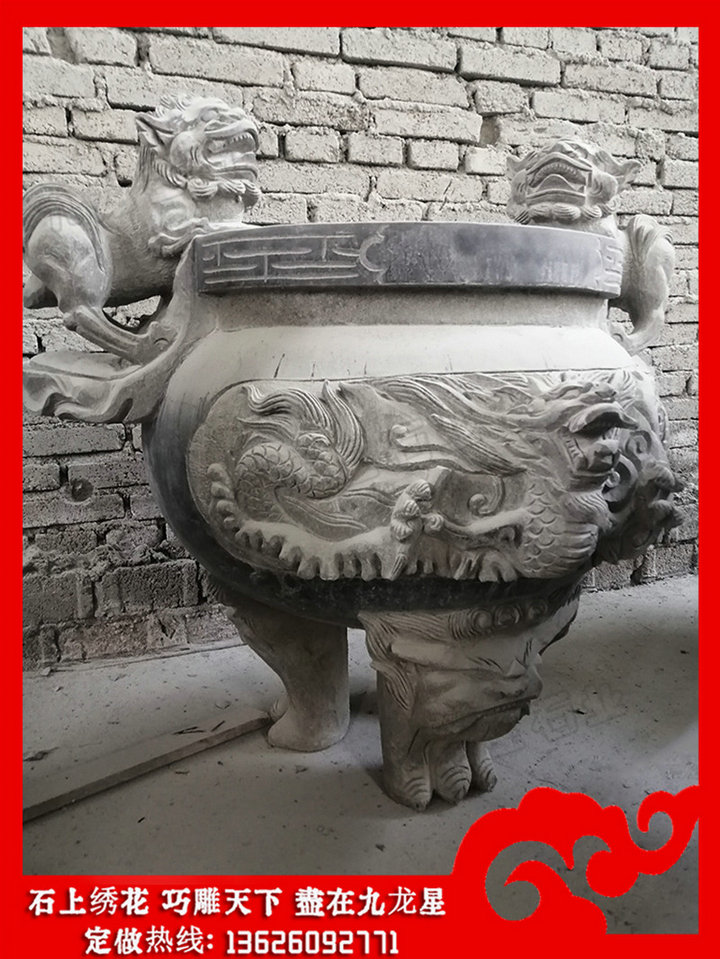 石香爐(寺廟石雕香爐訂制 石雕雙耳香爐圖片大全)——九龍星石業,廠家批發。