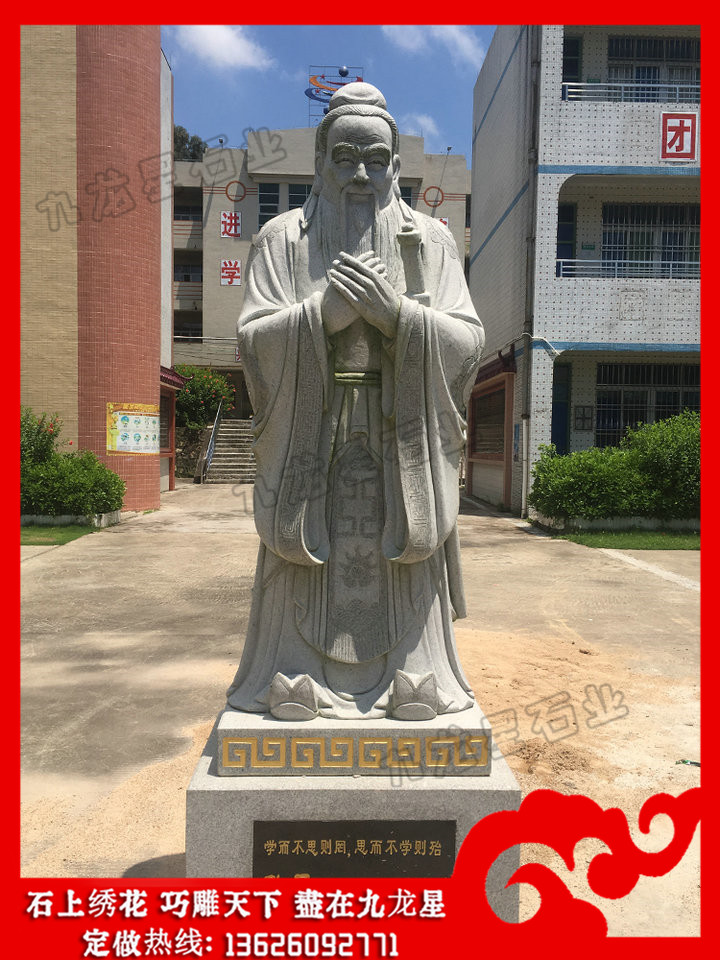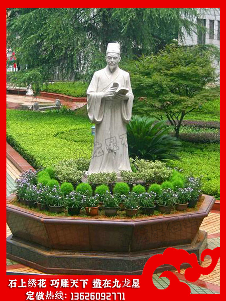 校園人物石雕的人物雕刻實際上來源于人們對于名人,偉人的一種欽慕之情,在古代的學堂,孔夫子就是擺放在教室的,以前是以一幅畫來展示,后來人們為了更加全面,更加細致,更加具體的了解到孔圣人,所以人們開始把他做成石雕,木雕,玻璃鋼雕,泥塑,樹脂雕等等。在西方,人們開始的人物大多以大理石來加工的,特別是后期在美術方面,大部分采用了石膏來代替石雕作品,讓雕刻品更加的潔白無瑕,但是石膏的作品穩定性和耐久度并不能令人滿意,所以白色的漢白玉石雕一度成為代替石膏作品擺放在室外的一種重要裝飾工藝品,而漢白玉的石雕人物雕塑作品算是校園石雕中非常重要的一個組成部分,用細膩的雕刻手法完全可以還原人物的各種動作表情,并且不會顯得不夠自然。