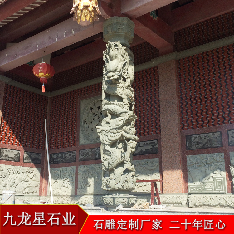 定做祠堂青石龍柱 石雕滾龍柱圖片——九龍星石業二十年工藝,自帶礦山。