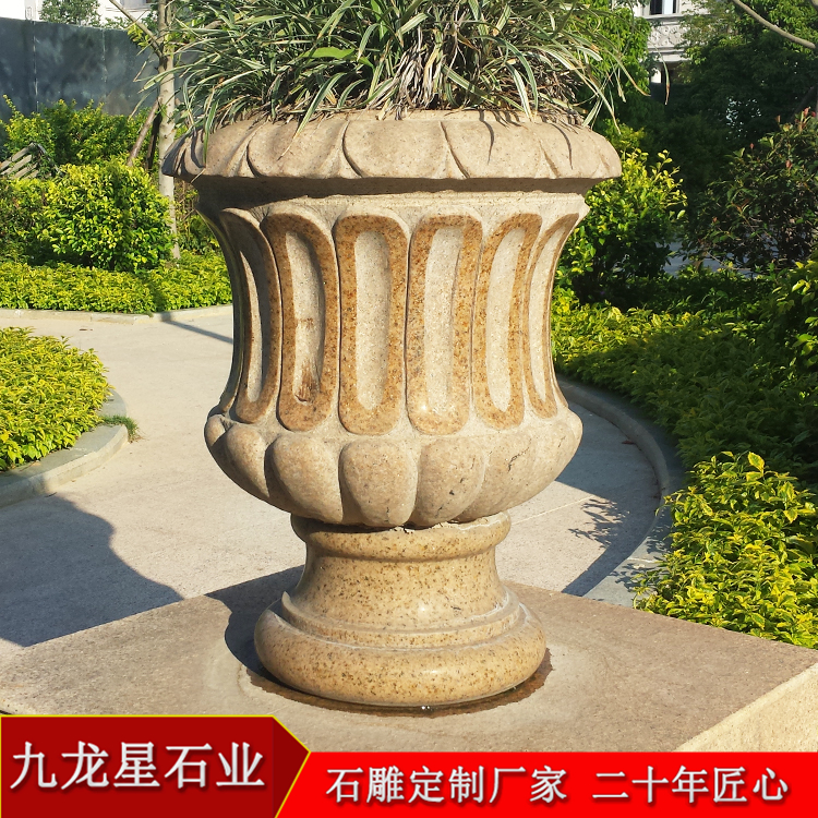 石材花盆花缽批發 大理石花缽定做廠家——九龍星石業,自帶礦山。